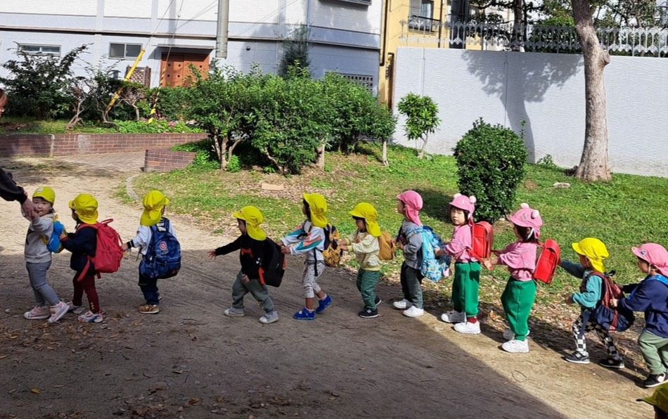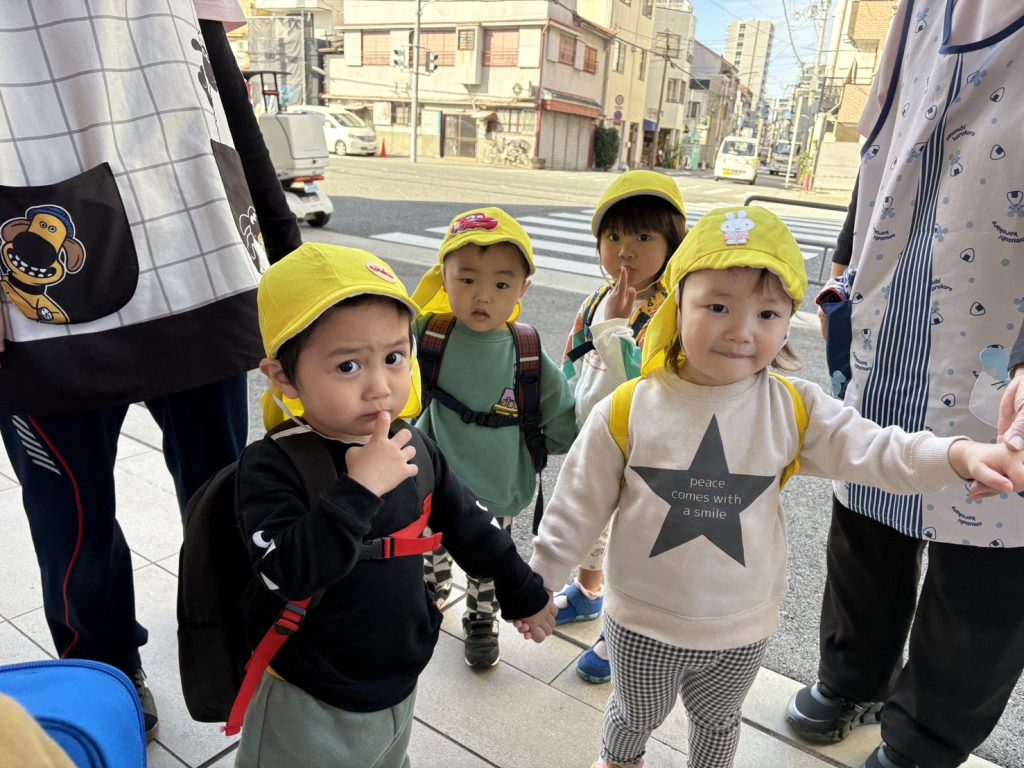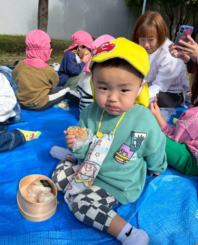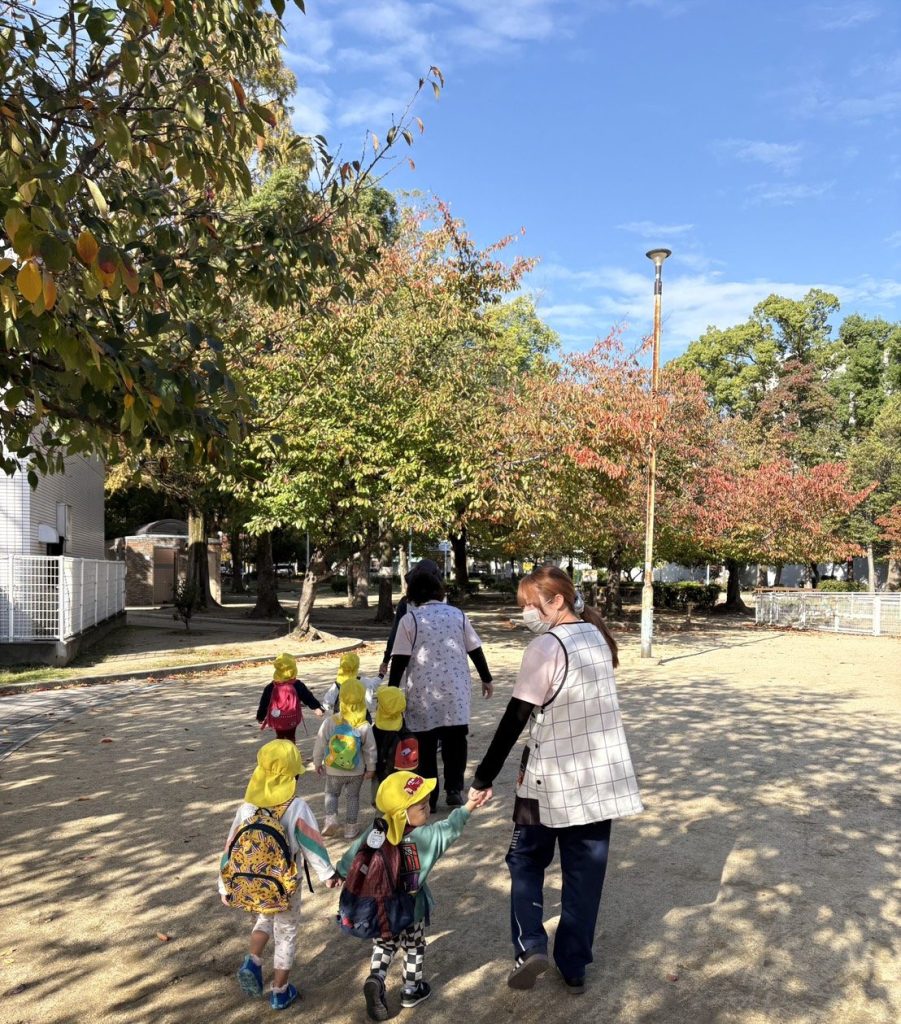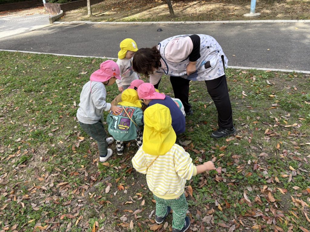 おにぎり遠足♪ 2025 11/11 2025年11月11日 今日は東小橋公園におにぎり遠足に行ってきました(*^-^*) 天気は快晴!遠足日和です♪ 電車になって仲良く歩きましたよ~ どんぐりバッグを身に着けて、どんぐり拾いをしました。 葉っぱ見つけたよ~ お昼ご飯はおにぎりです♪ 美味しい!と笑顔の子どもたちでした(*^-^*) 頬張っていましたよ(^^♪ ブログ
